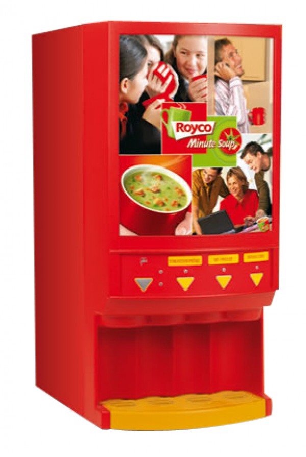 Met de Royco Dispenser kan je op elk moment van de dag genieten van een lekker groentetussendoortje. Onze kleine soepautomaat is niet alleen eenvoudig in gebruik en onderhoud, hij is ook ongelooflijk compact en oogt knap in elke werkomgeving of in om het even welke andere kleine ruimte.